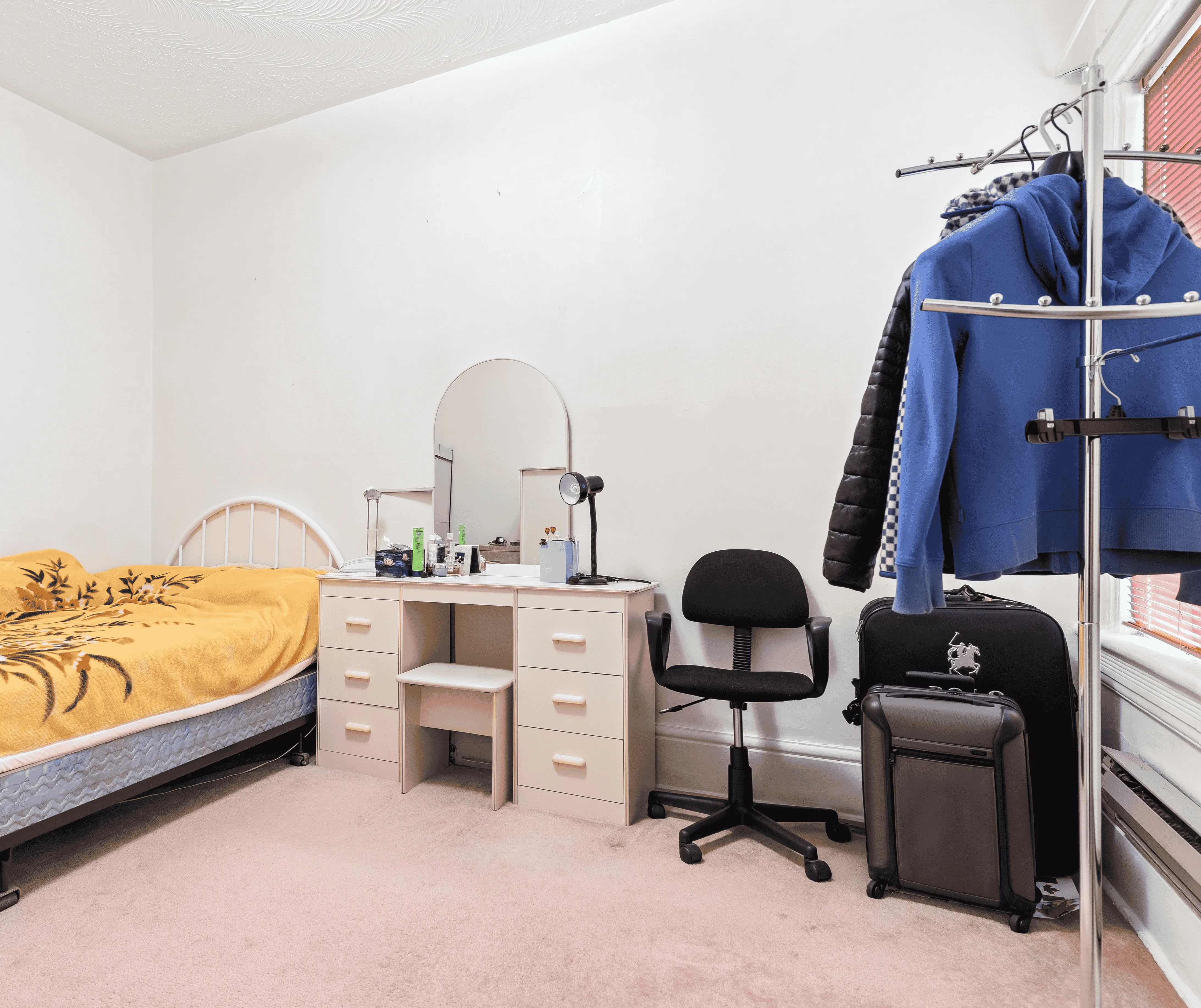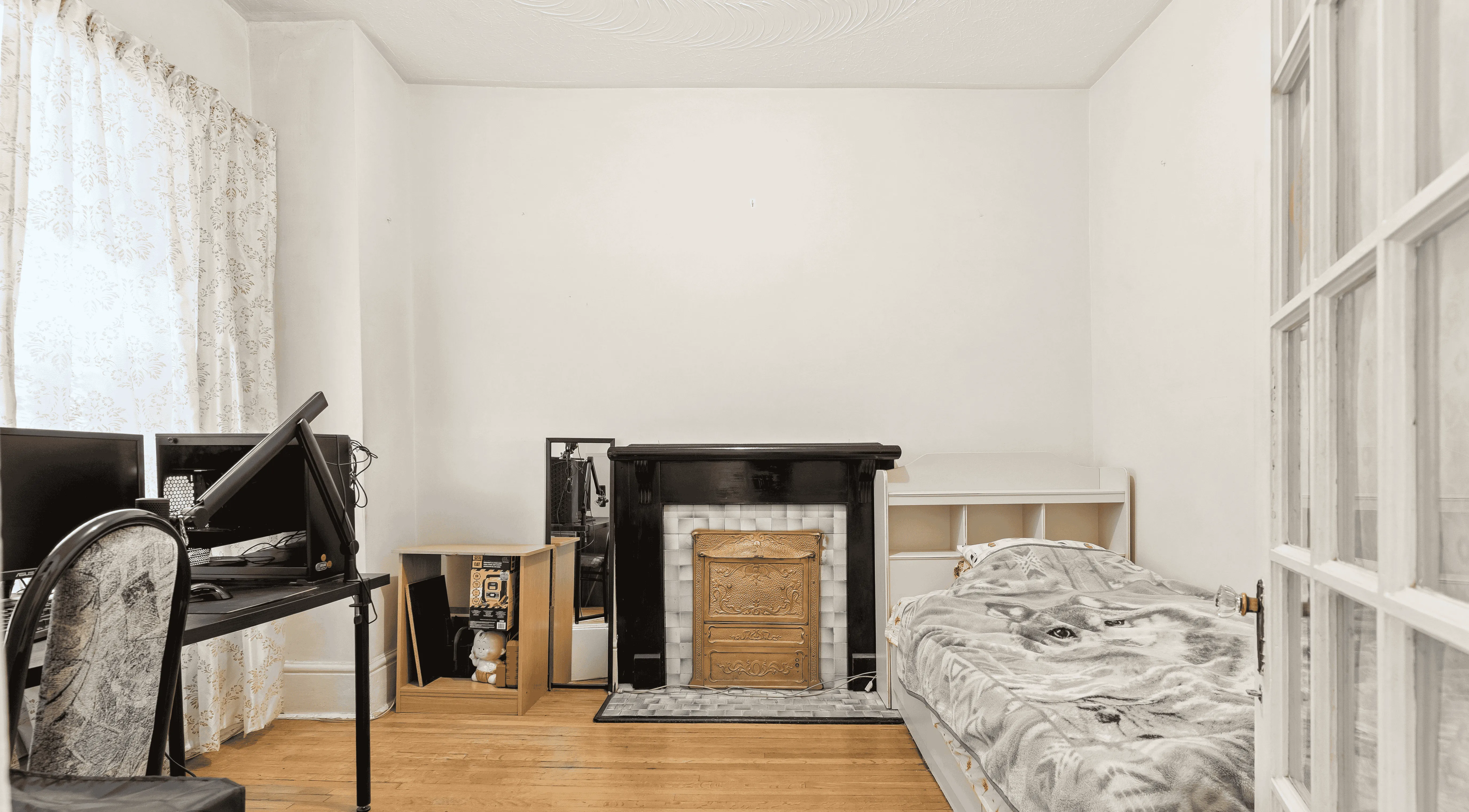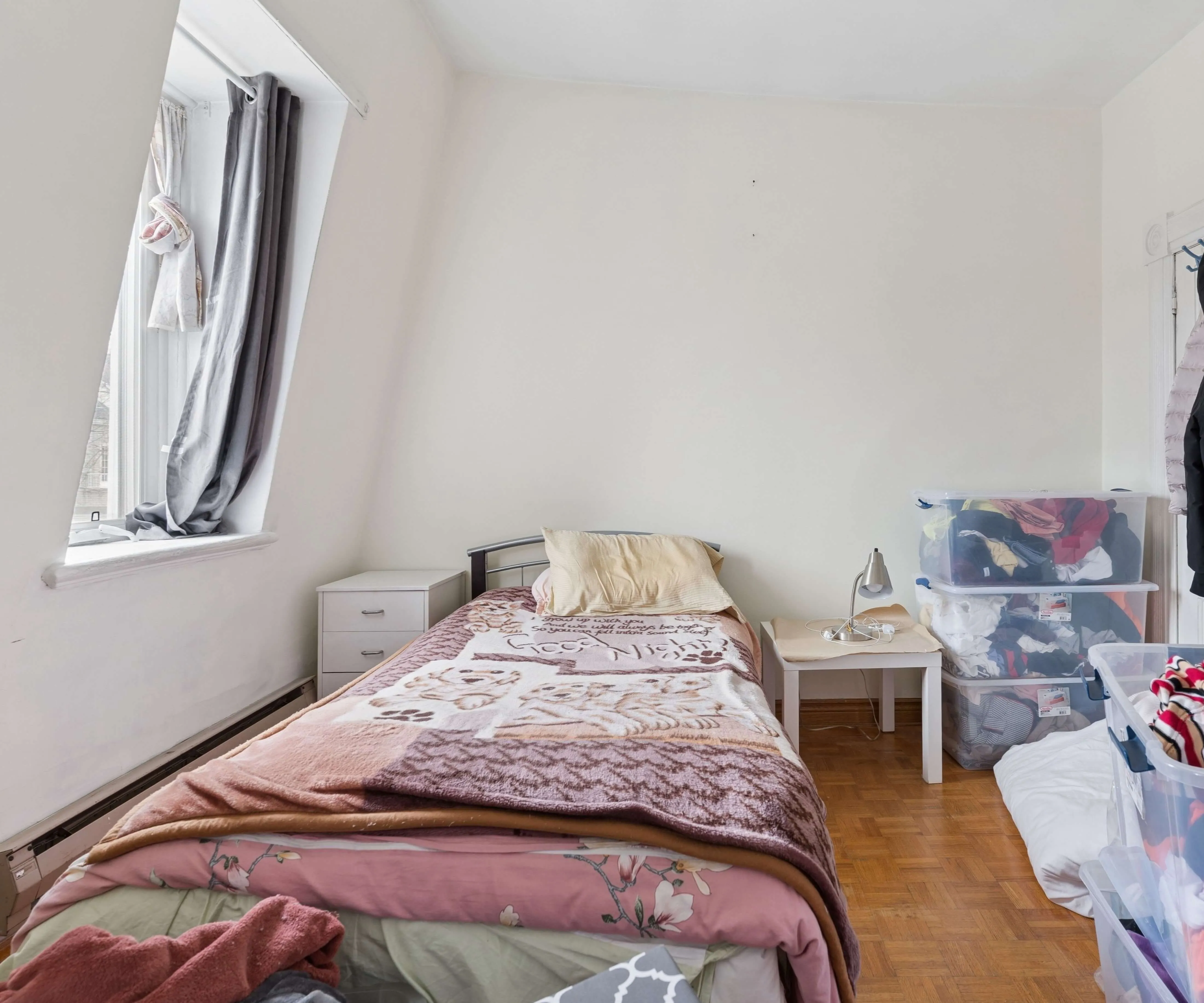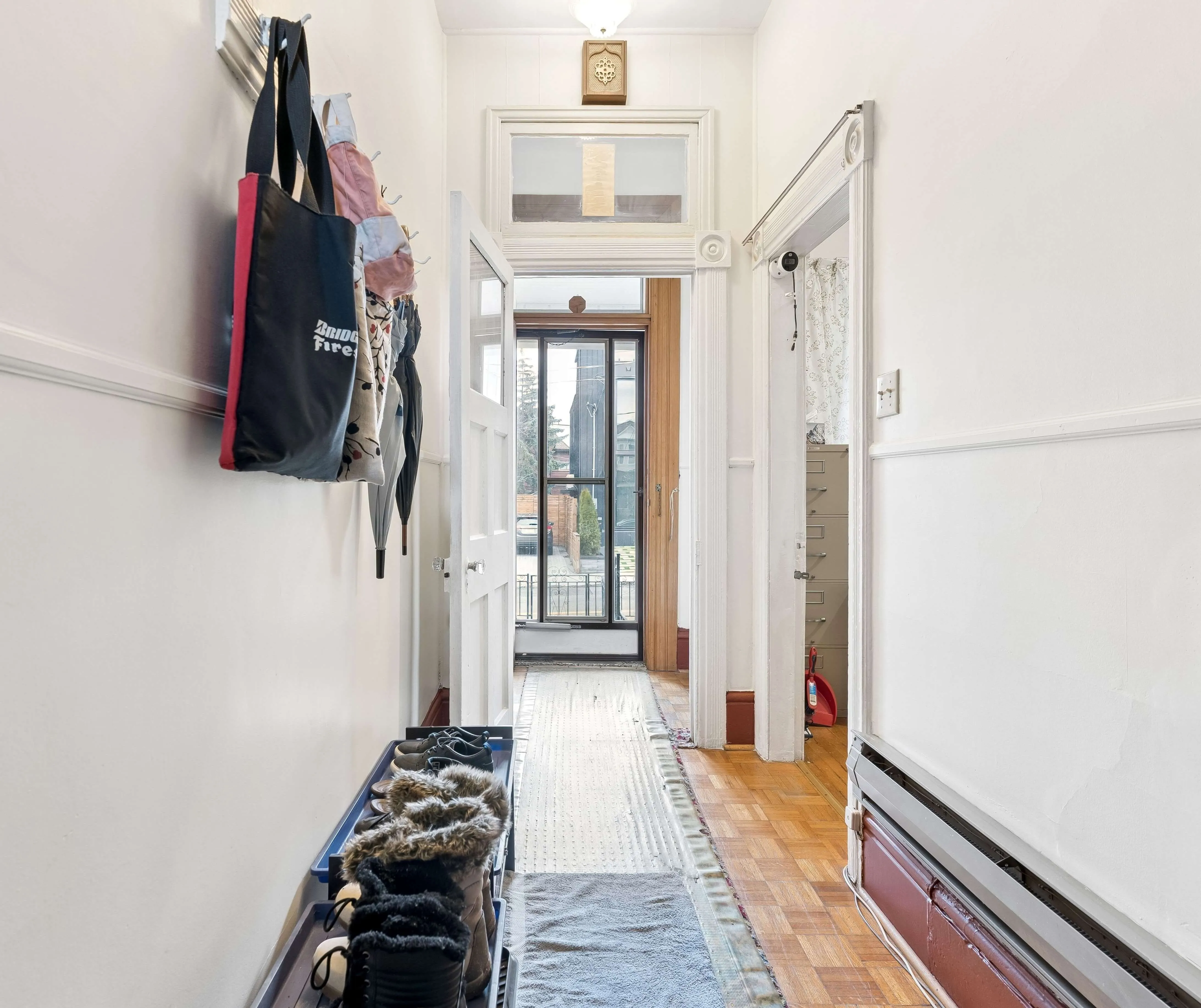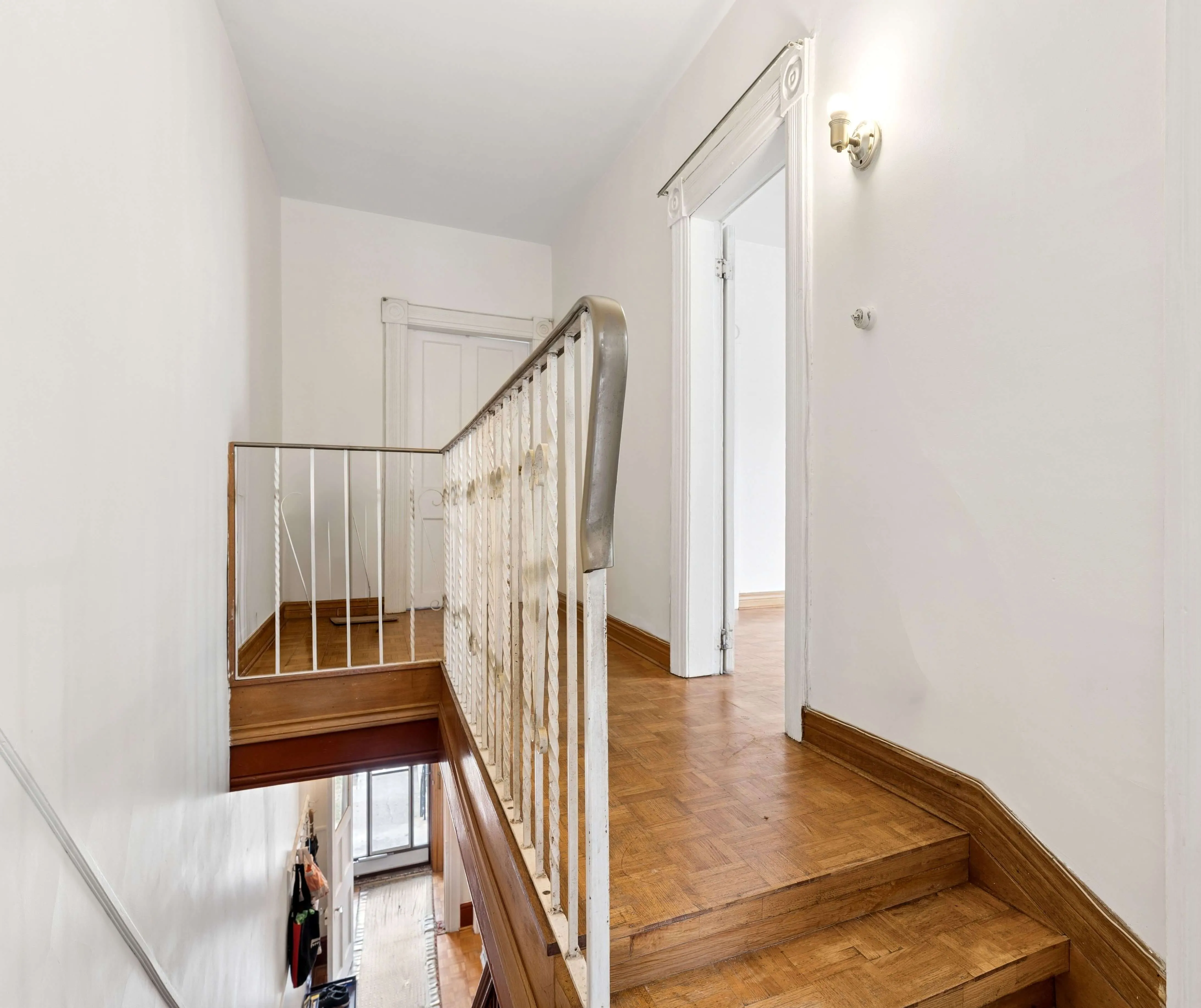 The upper level features two well-proportioned bedrooms with large windows, functional layouts, and walk-in closets. A full bathroom sits alongside, serving the floor with ease, while the rooms remain bright and adaptable for sleeping, working, or storage.