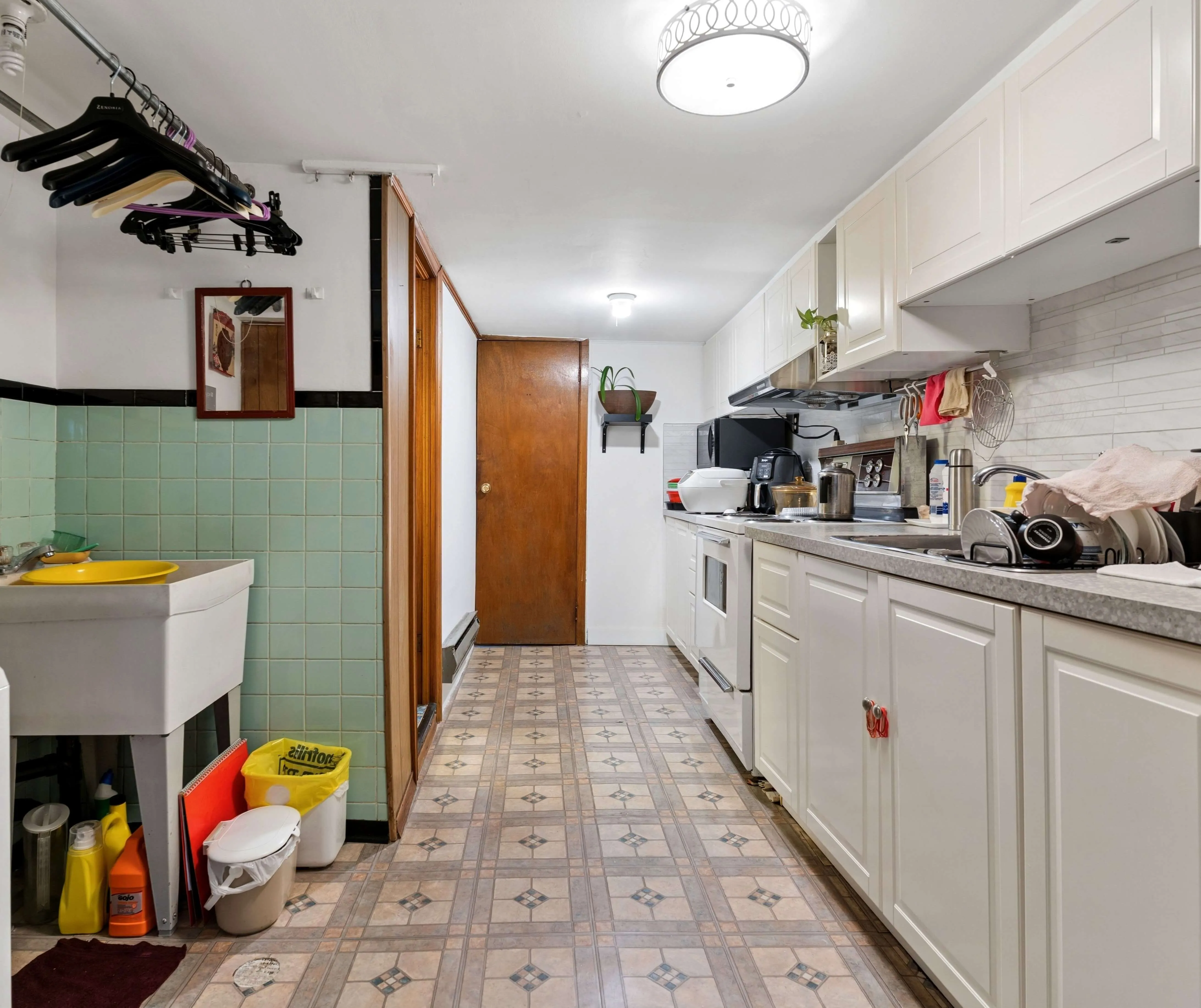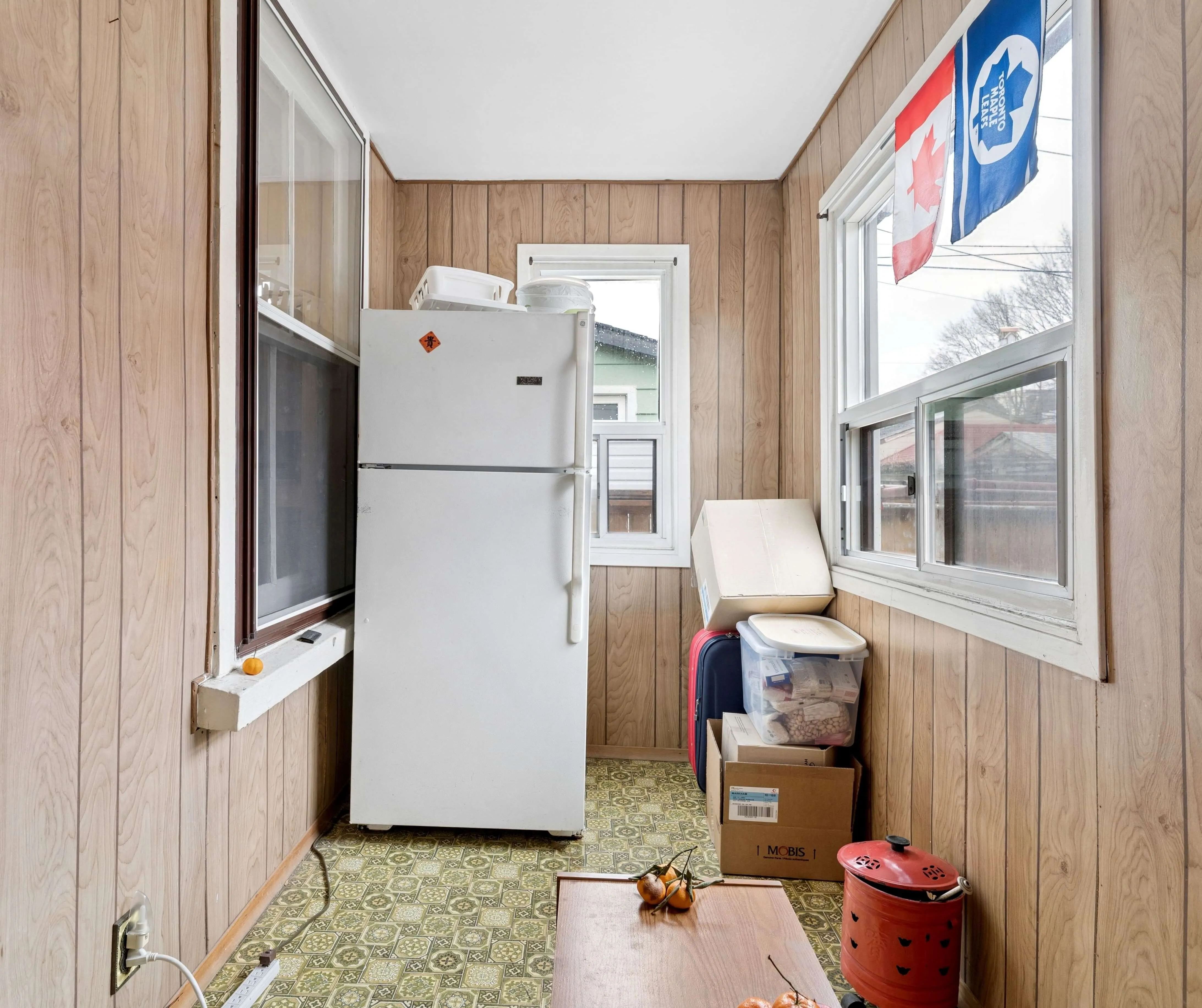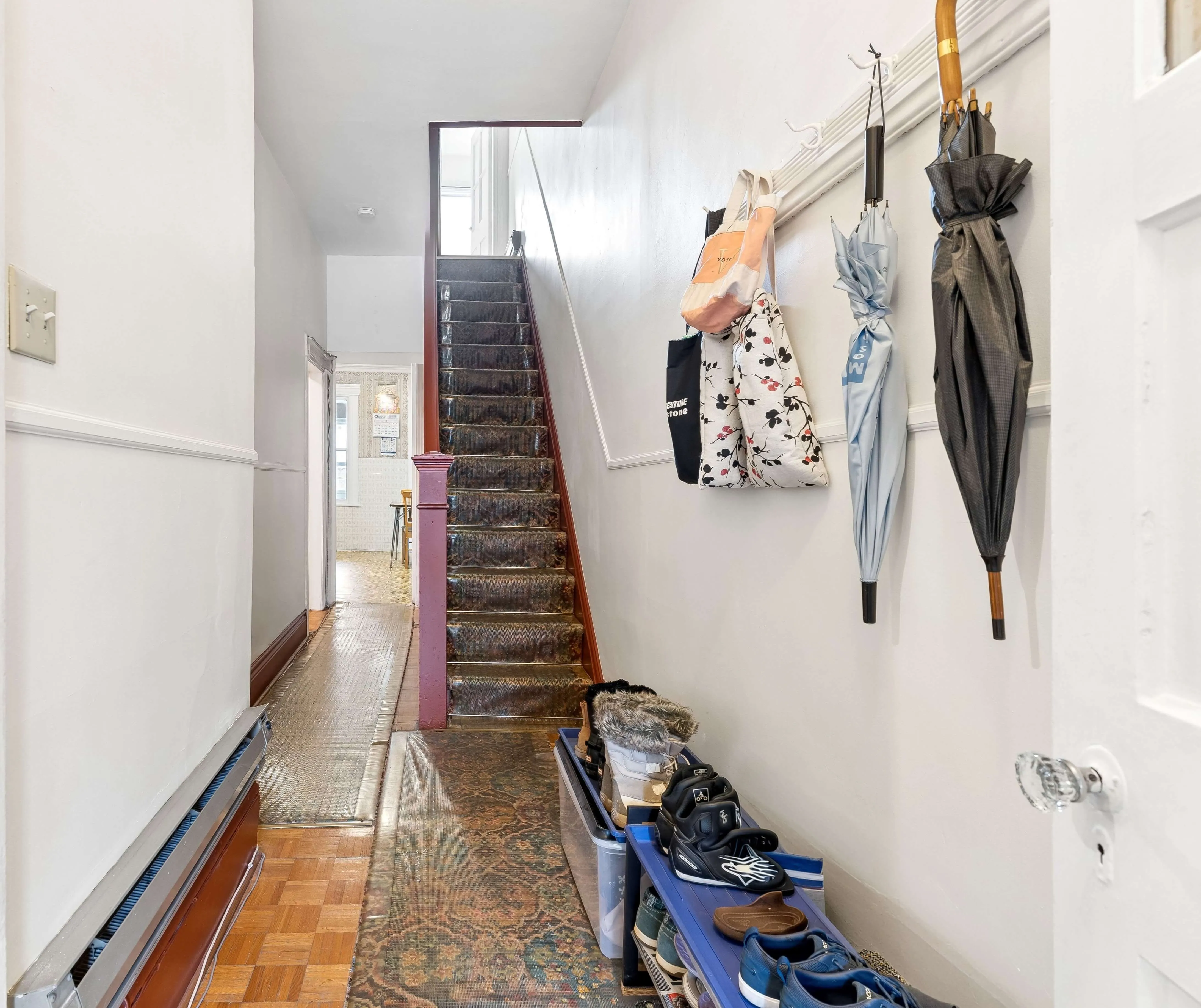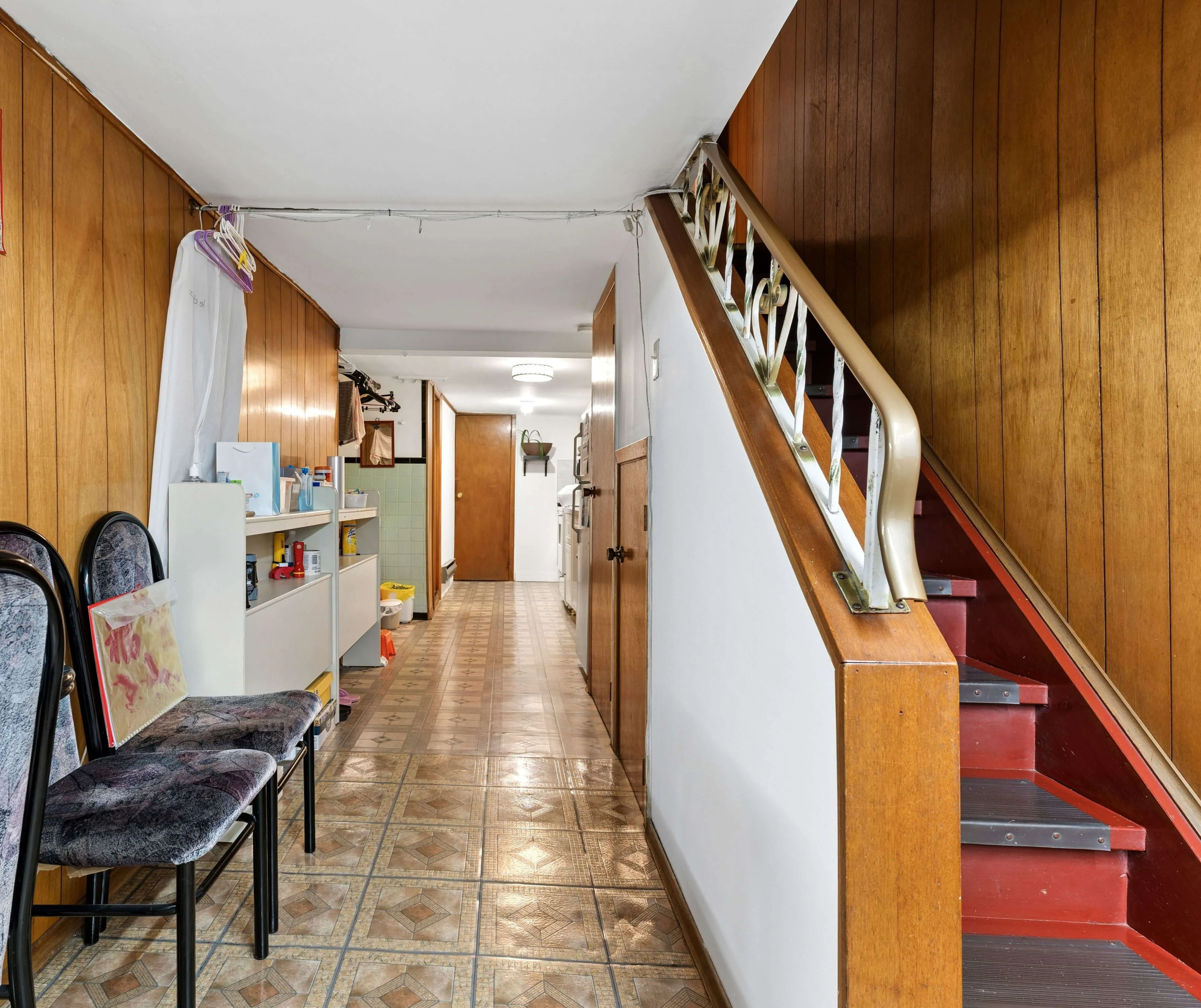 Between the living area and kitchen, a main floor room works naturally as a dining space or guest room. Upstairs, a secondary room at the top of the stairs adds flexibility, well suited as a home office, reading area, or quiet place to step away.