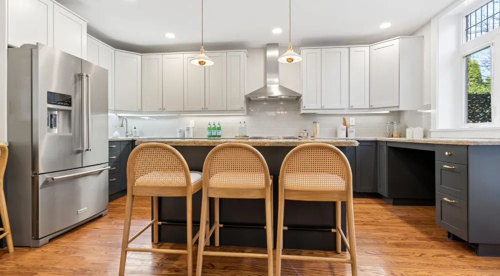 The updated kitchen brings modern function into the heart of the home, with granite countertops, stainless steel appliances, ample workspace, and a layout designed for both everyday living and entertaining. Connected to the dining and family areas, it keeps the main floor feeling practical, social, and easy to use.