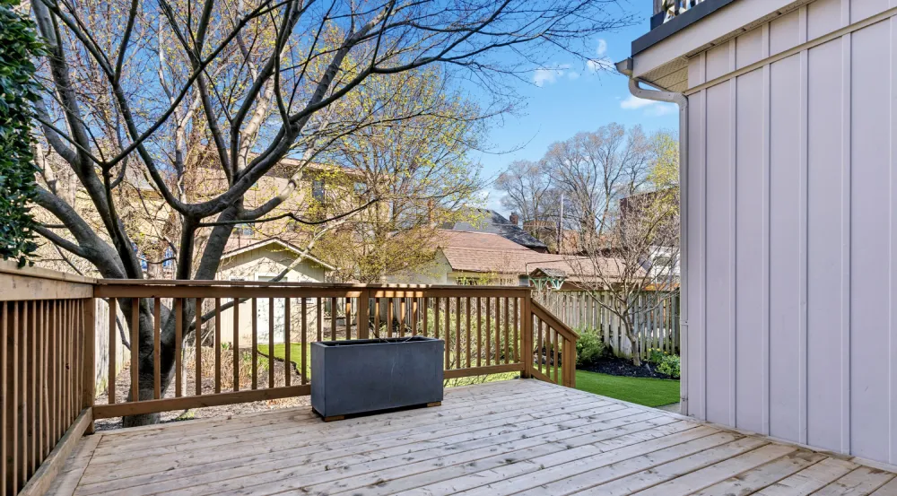 Accessed directly from the kitchen, the deck extends the home outdoors. Ideal for dining, morning coffee, or a quiet reset. Beyond, a rare stretch of green unfolds: a private, landscaped yard with irrigation, room to garden, space for a dog to roam, and a calm presence within the city.