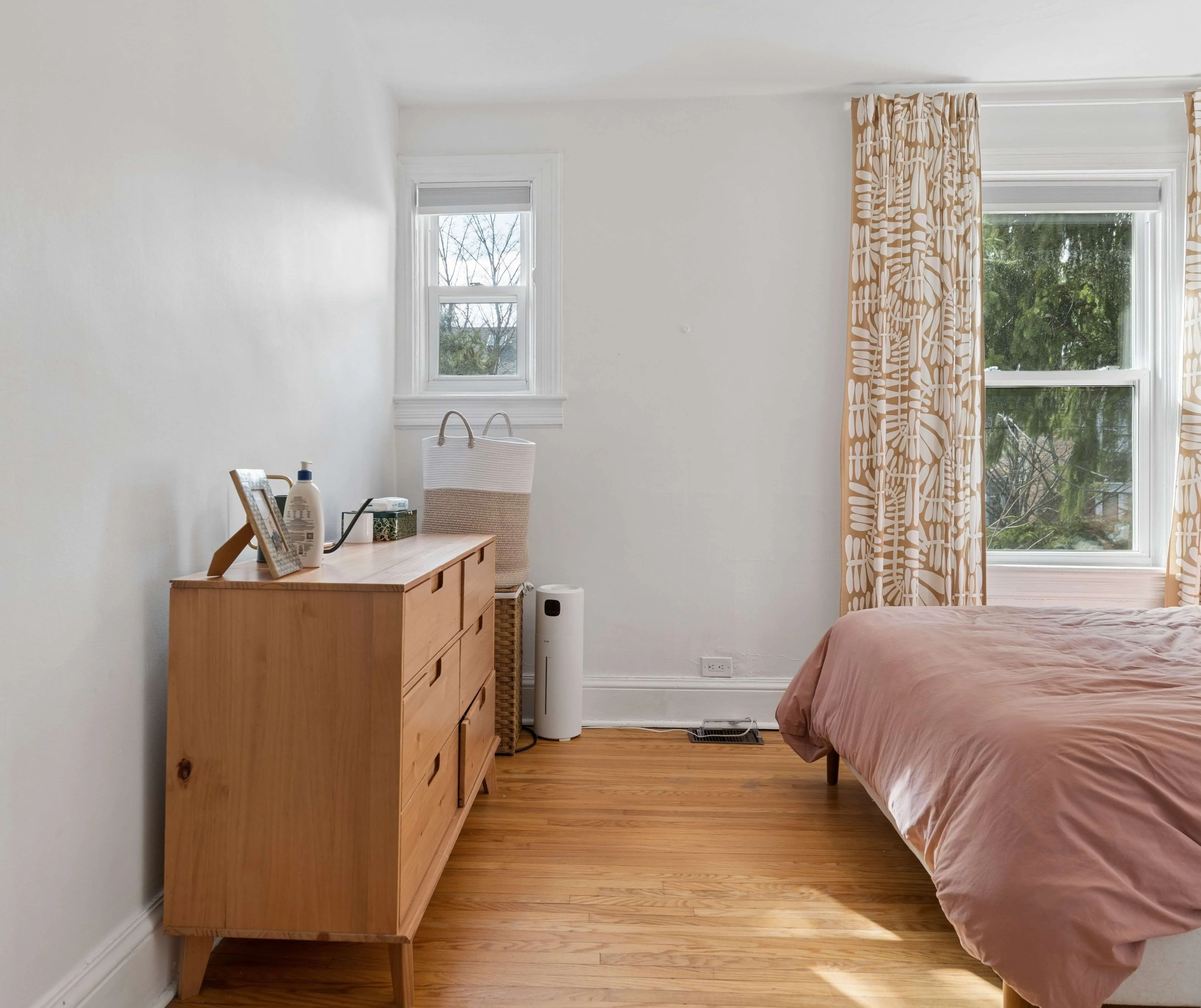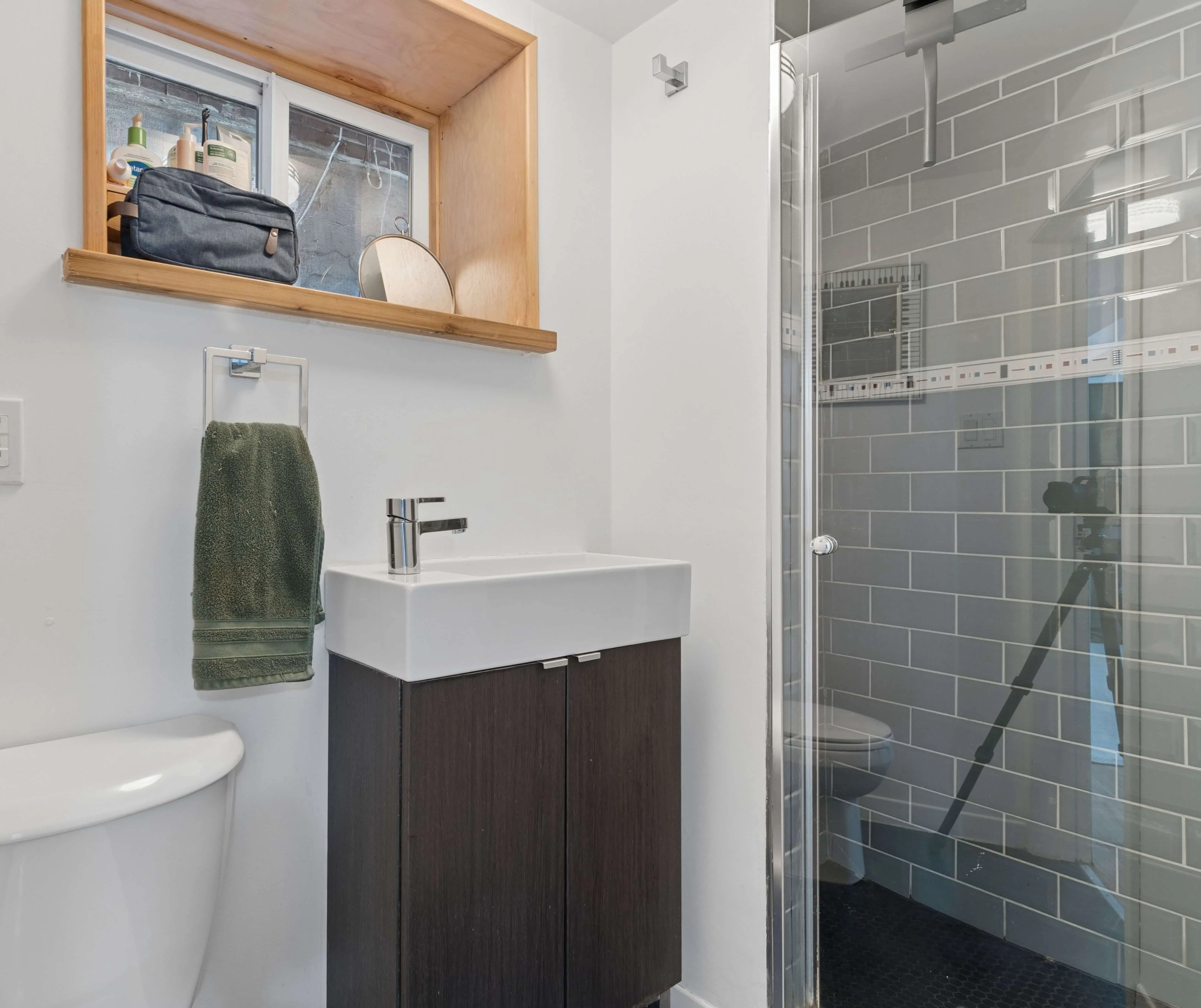 Natural light fills the large primary bedroom on the upper level, making it a calm and comfortable space to wake up and wind down. A full bathroom with clean finishes is also located on this floor, completing the upper level.