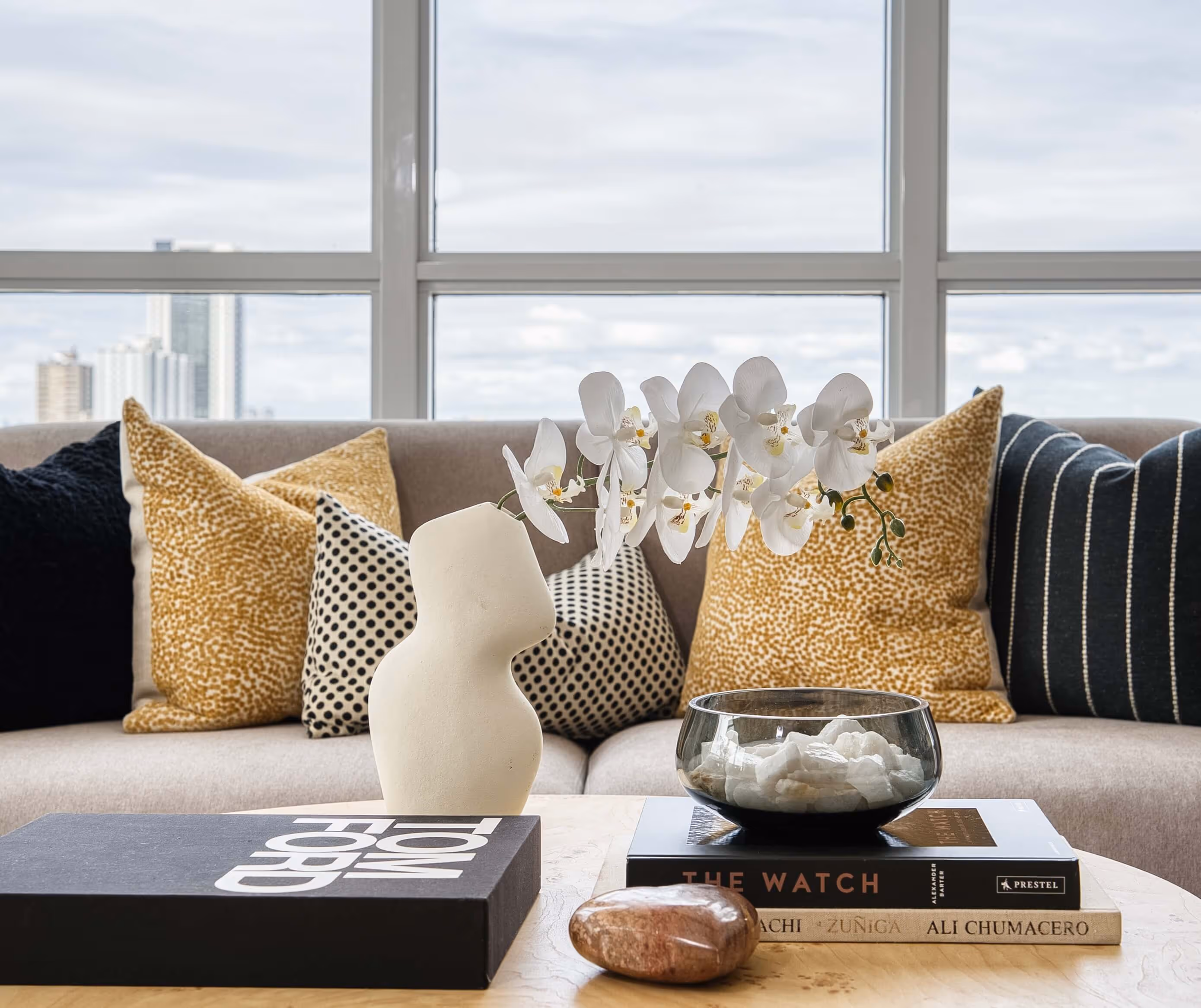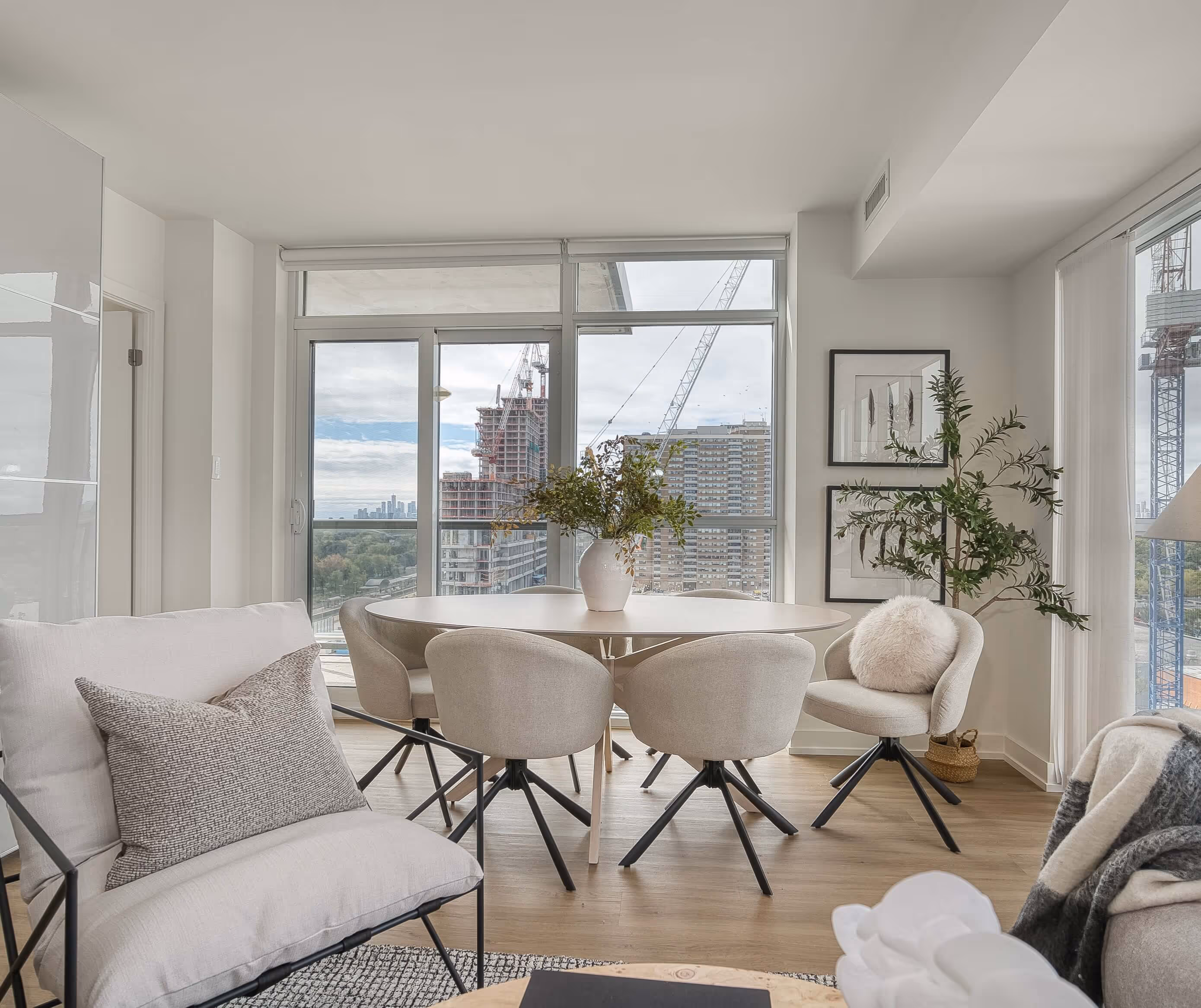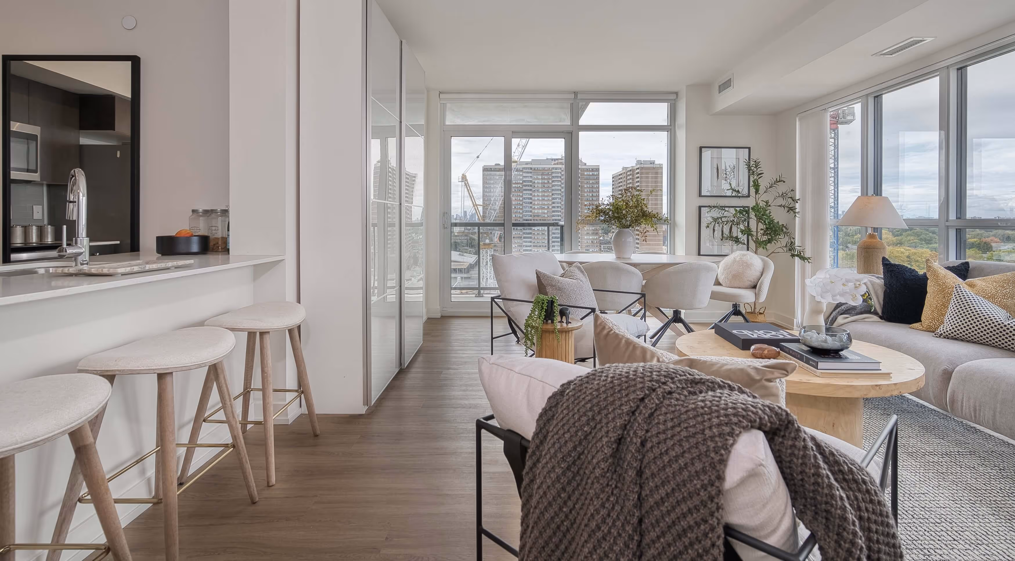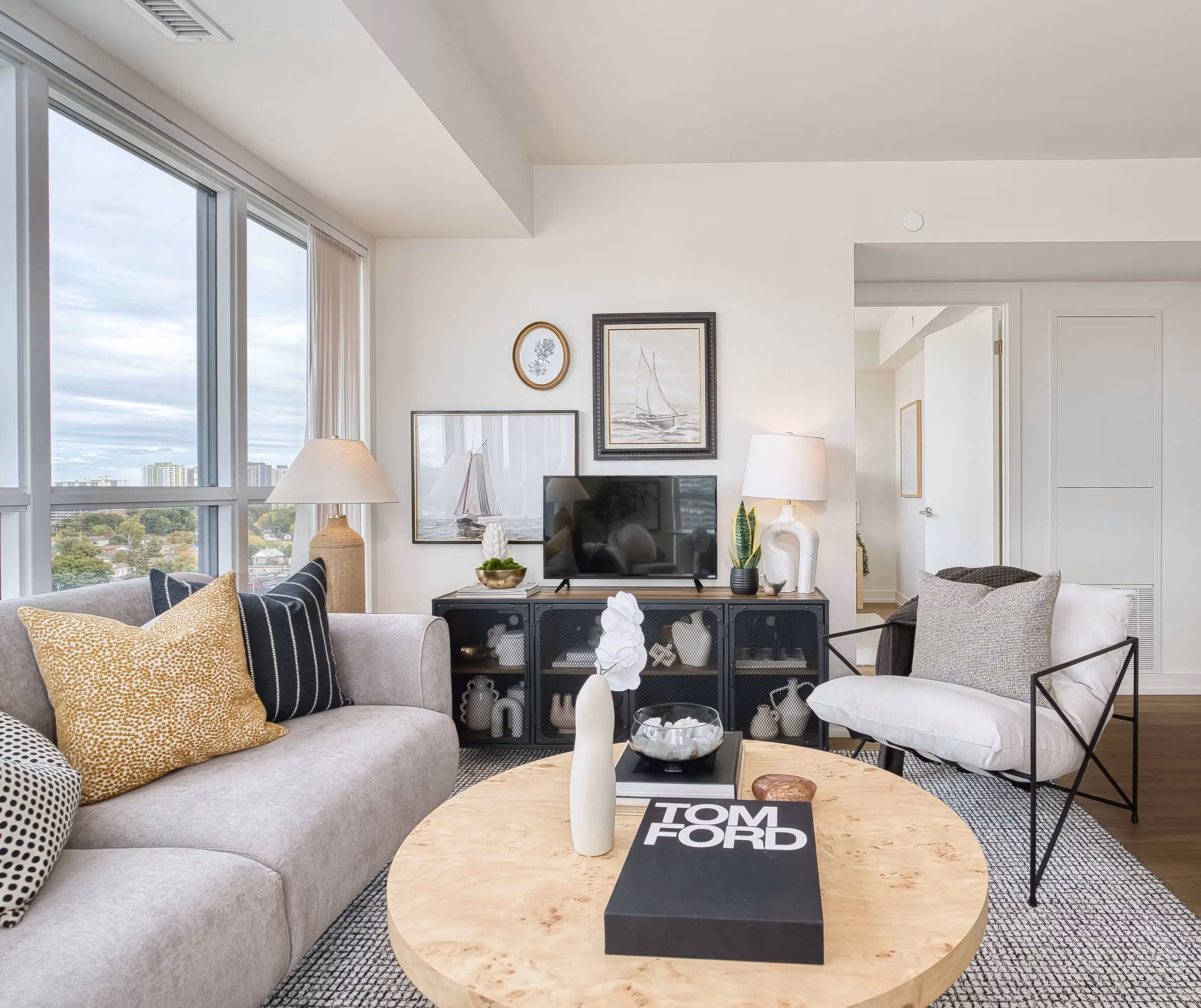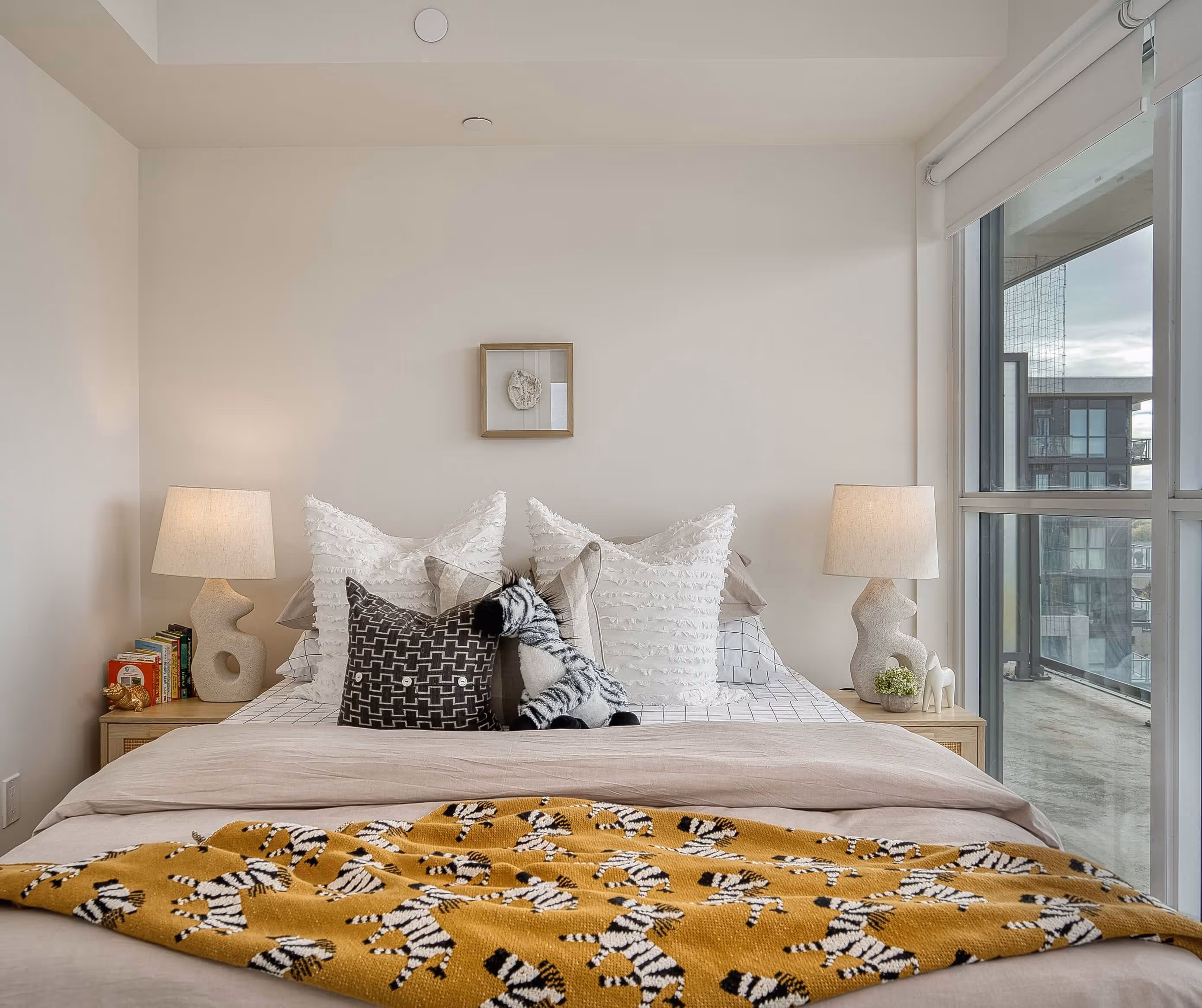 Sunlight pours through two walls of glass, filling the living space with warmth and openness. From here, the city feels close but never intrusive. Step onto the northwest-facing balcony for sweeping views that carry from day to dusk—a peaceful extension of your everyday living space.