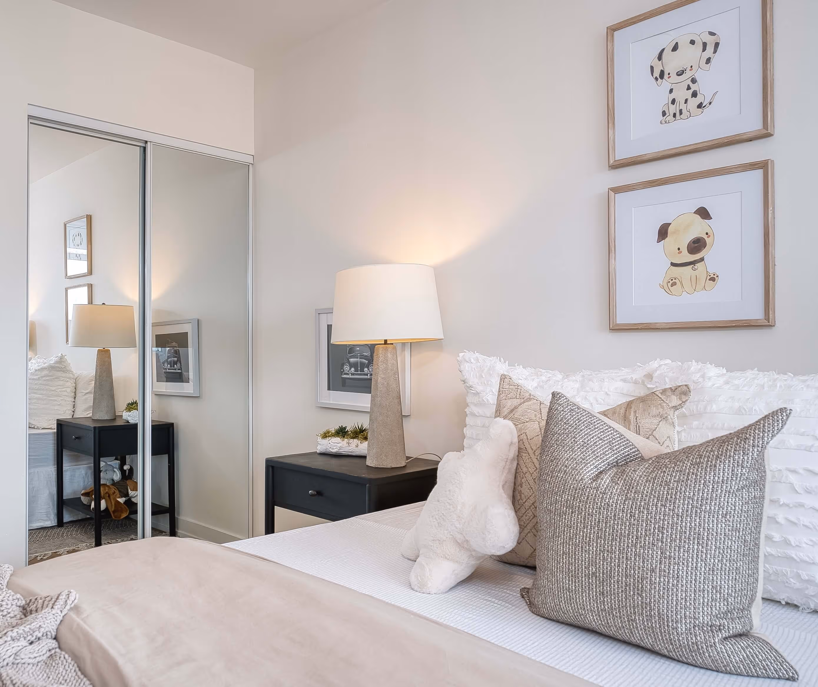 The primary suite offers a quiet retreat, framed by soft natural light and calming tones. With its spacious layout, generous closet, and full ensuite, it balances comfort and practicality—an elevated yet understated space to unwind, recharge, and begin each day feeling centered.