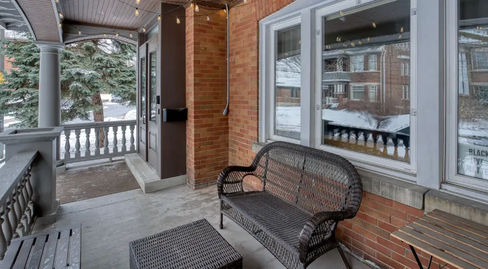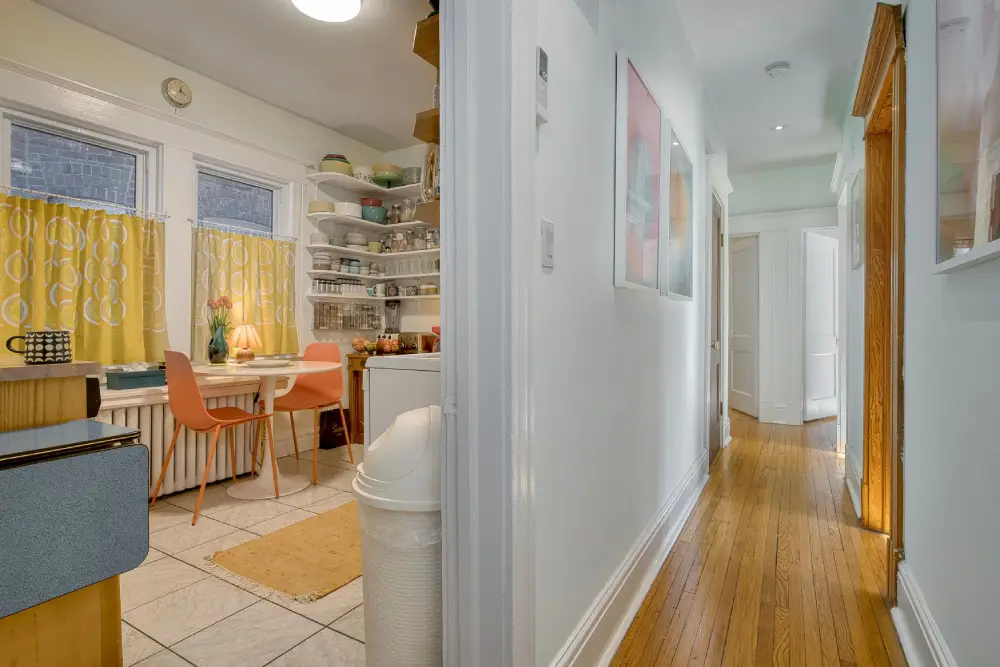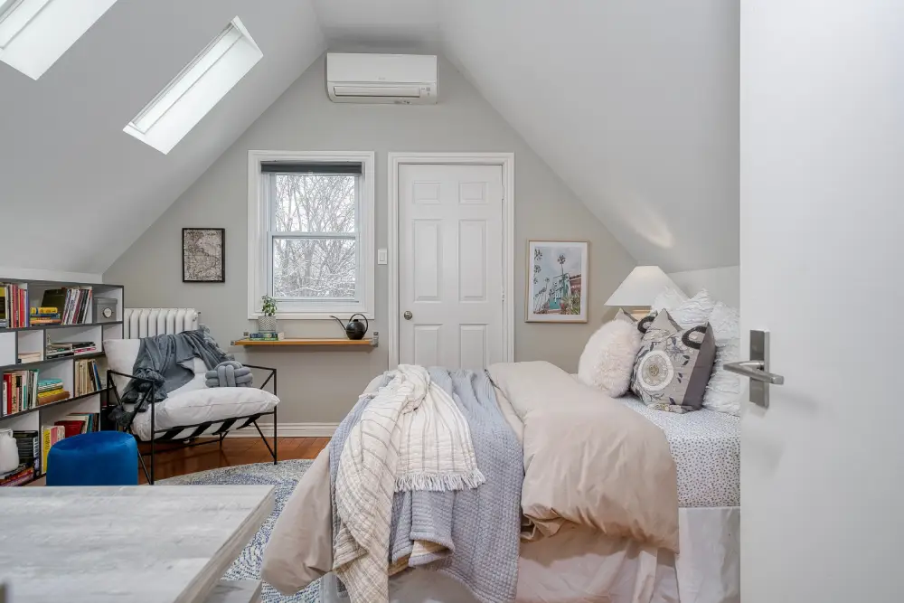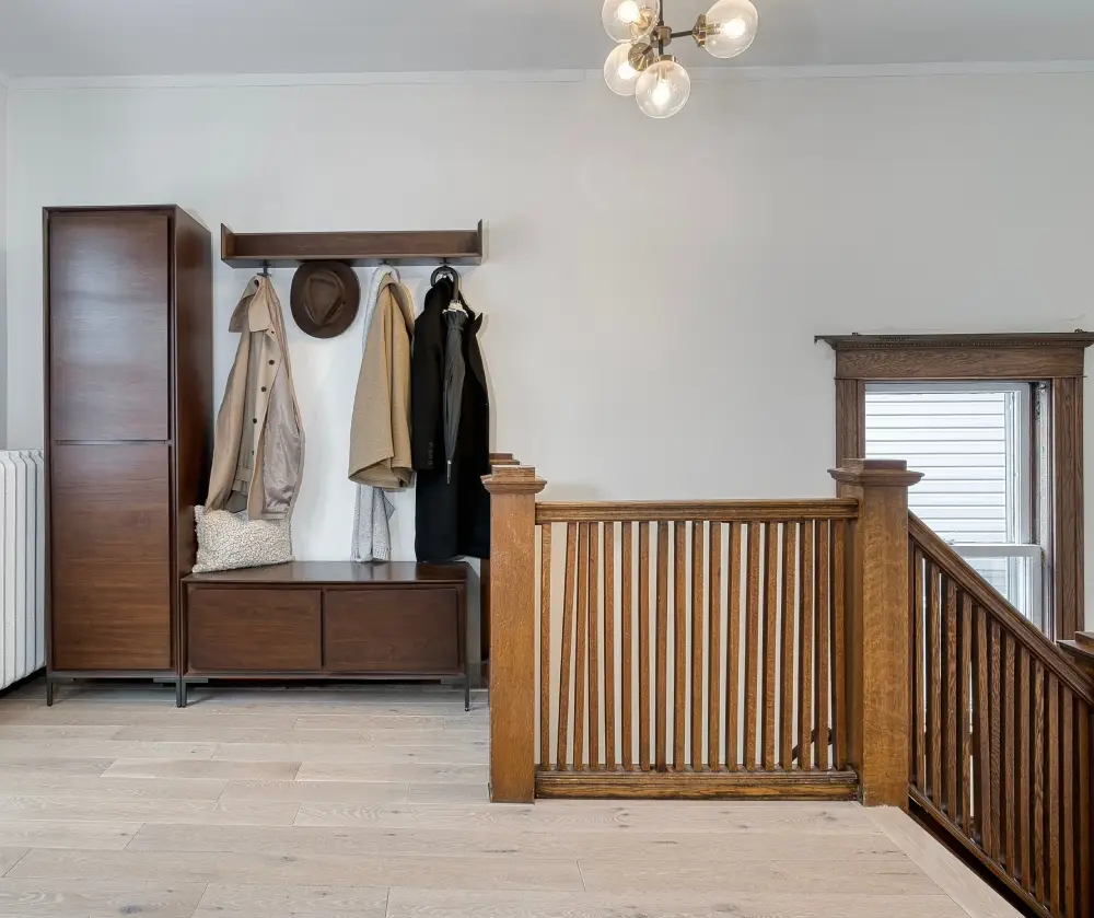 Welcome to 91 Indian Road—a detached home that unfolds as three separate suites, each offering their own rhythm, privacy, and personality. The deep front porch sets a gentle pace from the very start. The upper suite spans the second and third floors, beginning with a welcoming foyer wrapped in warm woodwork and thoughtful detail.