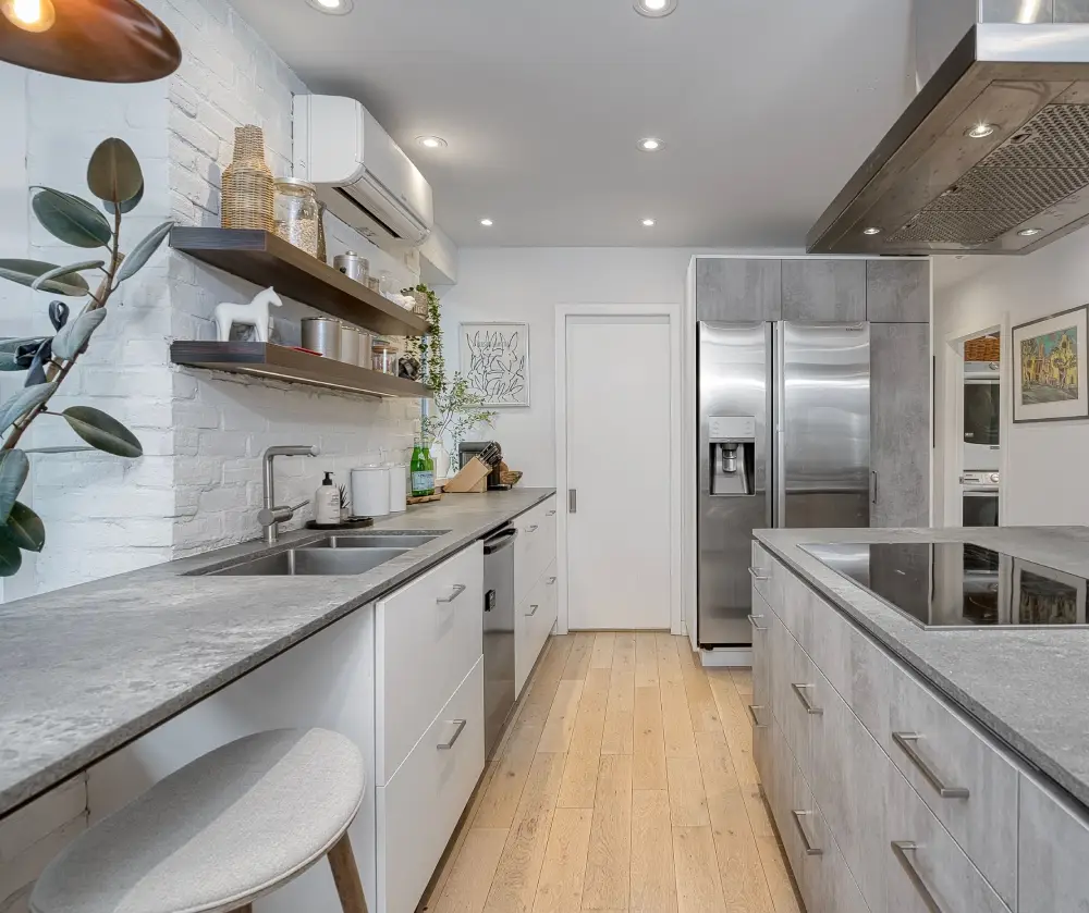 The chef’s kitchen pairs sculptural design with true culinary intention. The island sets the stage for breakfasts, baking sessions, and lively evenings with friends, while integrated Miele appliances and a generous pantry support every menu with effortless precision. It’s a kitchen that invites people to gather, talk, and linger.