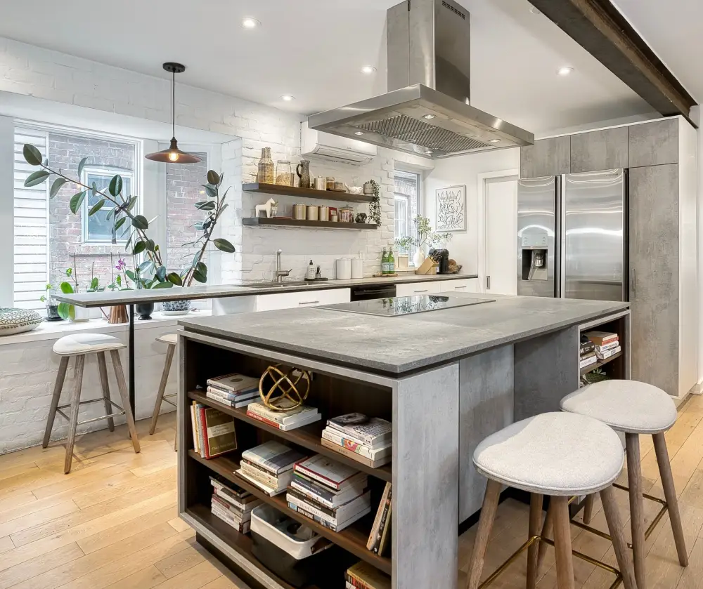 The third-floor living area opens into an uplifting, skylit haven shaped by architectural angles and sweeping sight lines. A space for movie nights or simple stillness, it brings a grounded comfort that makes conversations feel effortless.