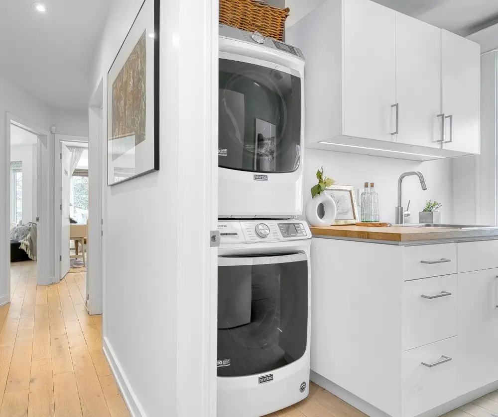The converted sunroom introduces a softer rhythm, surrounded by windows that invite in greenery and creates a gentle, restorative atmosphere—perfect for reading, writing, or pausing between moments. Also on this floor, the bright, newly updated laundry room adds ease and function without interrupting the sense of calm.