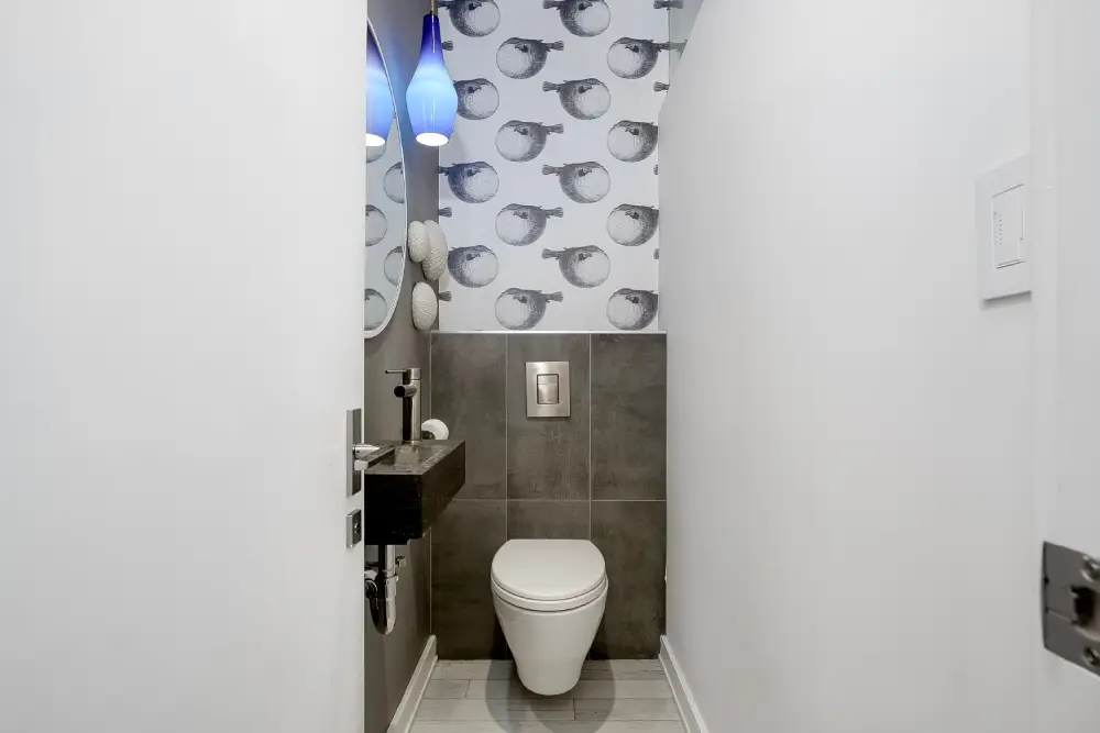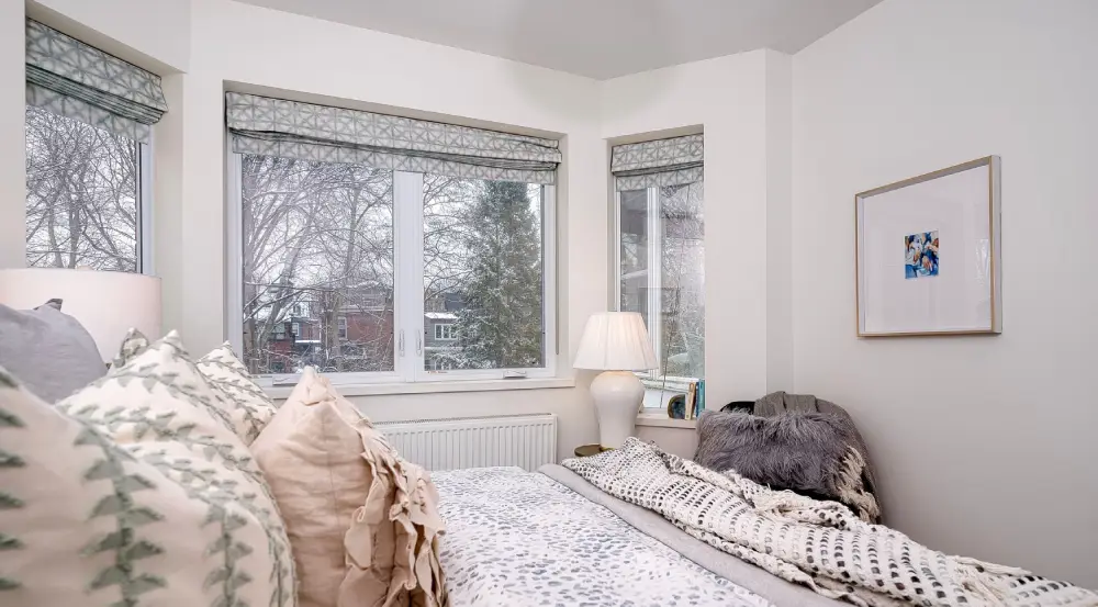 Morning light lends the second bedroom a welcoming, restful quality, making it ideal for guests or a personal corner of solitude. A refined powder room and a beautifully updated 3-piece bath serve the level with understated style, rounding out the thoughtful second-floor layout.